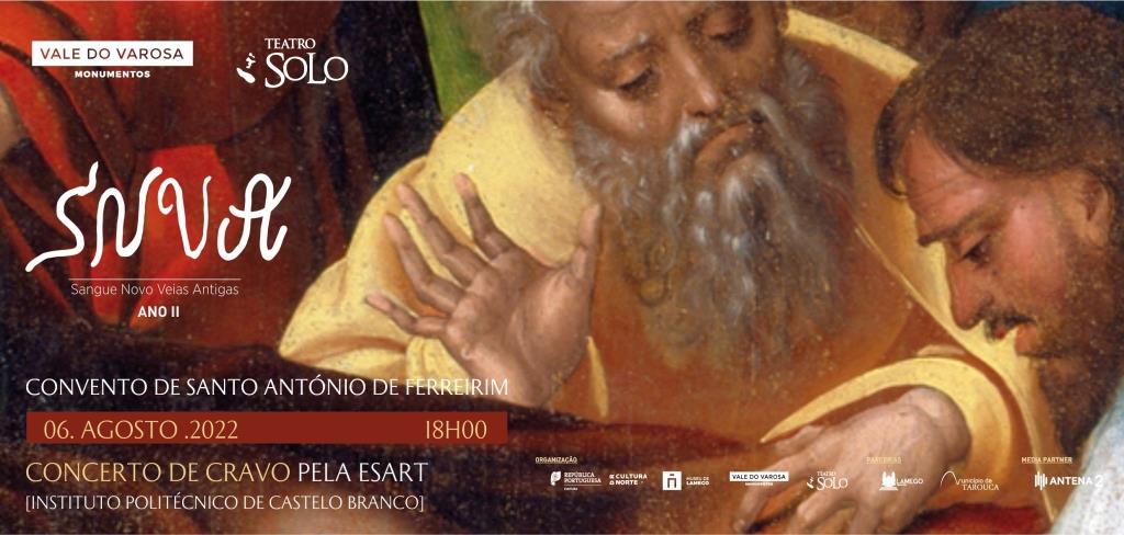 Sangue Novo Veias Antigas traz Concerto de Cravo ao Convento de Santo António de Ferreirim Este sábado, dia 6 de agosto, pelas 18h00, o Convento de Santo António de Ferreirim é o próximo monumento do Vale do Varosa a receber o quinto espetáculo de música do projeto Sangue Novo Veias Antigas. Um concerto de cravo é a proposta dos alunos da ESART, do Instituto Politécnico de Castelo Branco, com a apresentação de um reportório singular e eclético de grandes compositores, nomeadamente François Coupe [...]