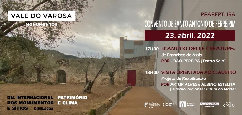 Reabertura do Convento de Santo António de Ferreirim Património e Clima é o tema escolhido em 2022 para assinalar o Dia Internacional dos Monumentos e Sítios (18 de abril). Os Monumentos do Vale do Varosa associam-se às celebrações, no próximo dia 23 de abril, pelas 17h00, no Convento de Santo António de Ferreirim, numa iniciativa que se destina, igualmente, a assinalar a reabertura desse monumento de forma permanente ao público (de terça a domingo, 10h00-13h00 e 14h00-18h00), após dois anos de [...]