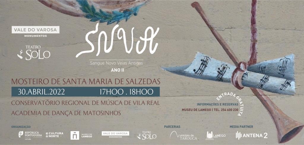 Sangue Novo Veias Antigas. Ano II. Espetáculo inaugural Sangue Novo Veias Antigas regressa aos Monumentos do Vale do Varosa para nova temporada. O espetáculo inaugural acontece no Mosteiro de Santa Maria de Salzedas, a 30 de abril. Depois do retumbante sucesso obtido na primeira ronda de espetáculos que, entre maio e outubro do ano passado, percorreram os Monumentos do Vale do Varosa, o projeto Sangue Novo Veias Antigas está de regresso, com um espetáculo inaugural marcado já para o dia 30 de ab [...]